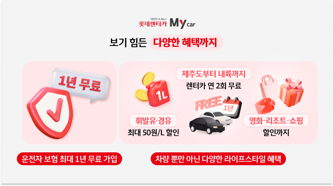 지금, 롯데렌터카 마이카에서 푸짐한 혜택과 함께 내 차 생활을 시작해보세요!