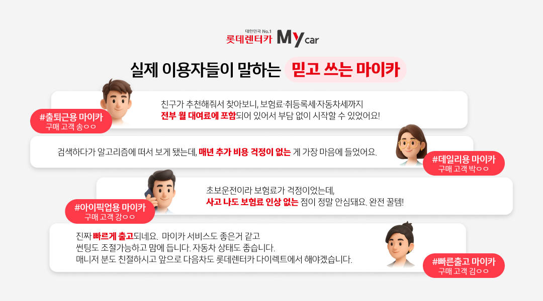 이렇게 많은 사람들이 롯데렌터카, 특히 롯데렌터카 마이카를 선택하는 이유는 무엇일까요?