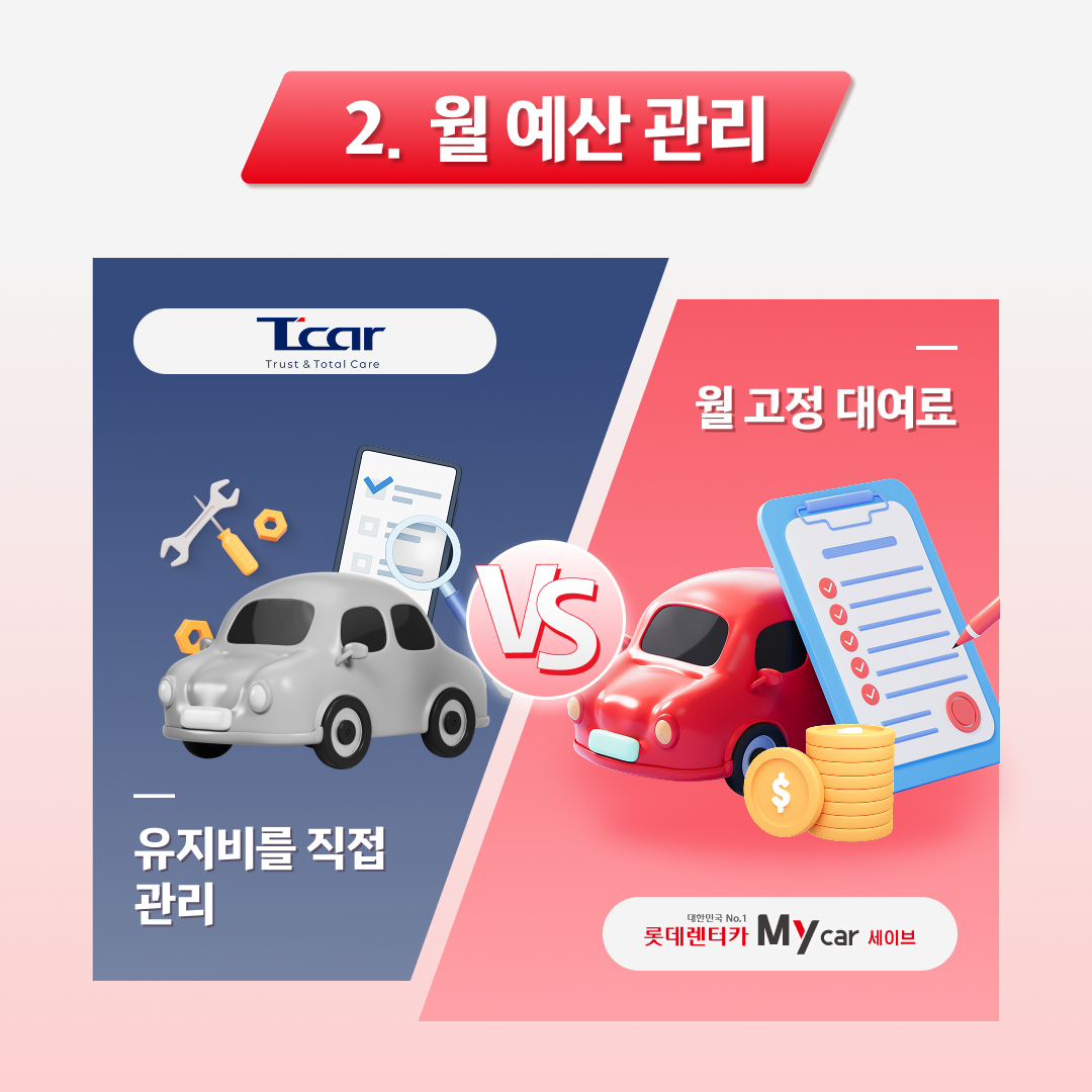 오늘은 롯데렌탈의 중고차 브랜드인 T car(중고차 구매)와 롯데렌터카 마이카 세이브(중고차 장기렌트)를 초기 비용·예산관리·기간 유연성·정비/관리 관점에서 쉽게 비교해 드릴게요✨