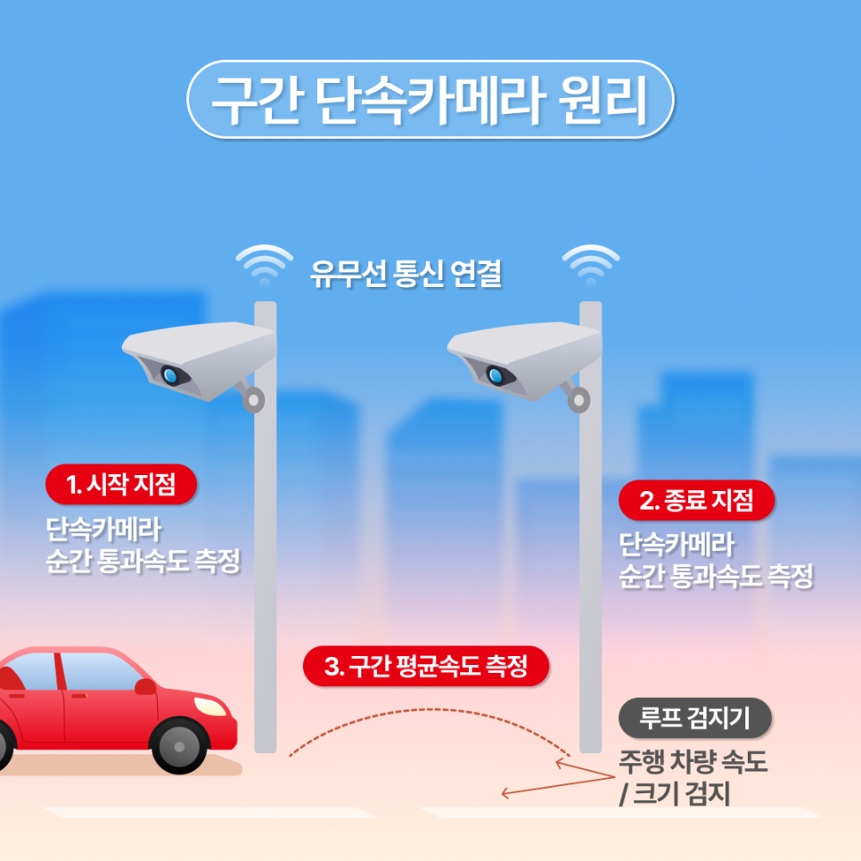 시작 지점과 종료 지점에서 차량 통과 시간을 측정해 평균 속도를 계산 하는데요.