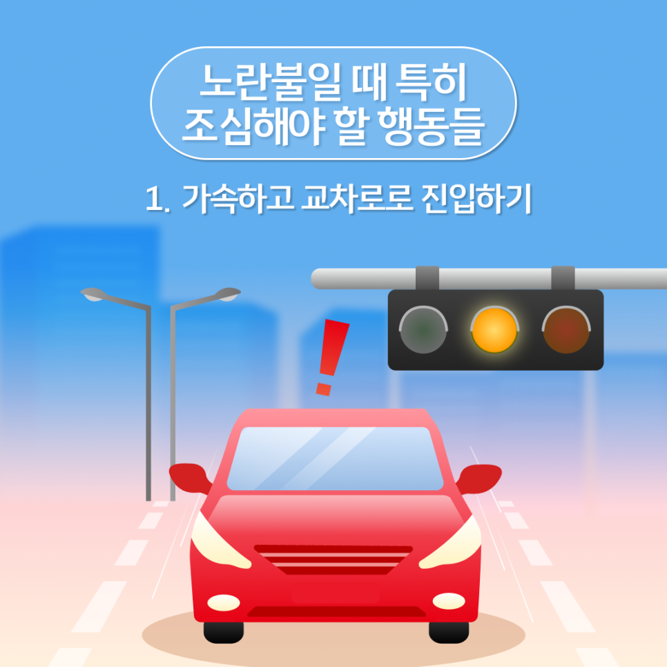 신호가 노란 불일 때 특히 조심해야 할 행동들은 어떤 게 있을까요?