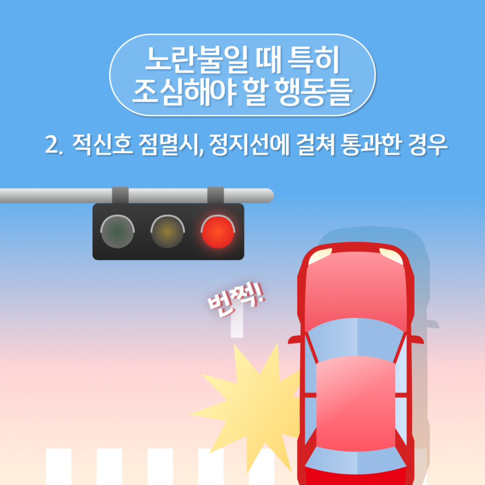 [노란 불일 때 특히 조심해야 할 행동들 - 적신호 점멸 시, 정지선에 걸쳐 통과한 경우]